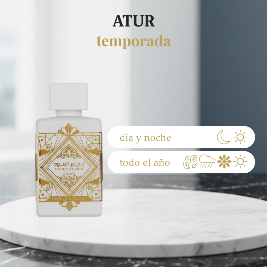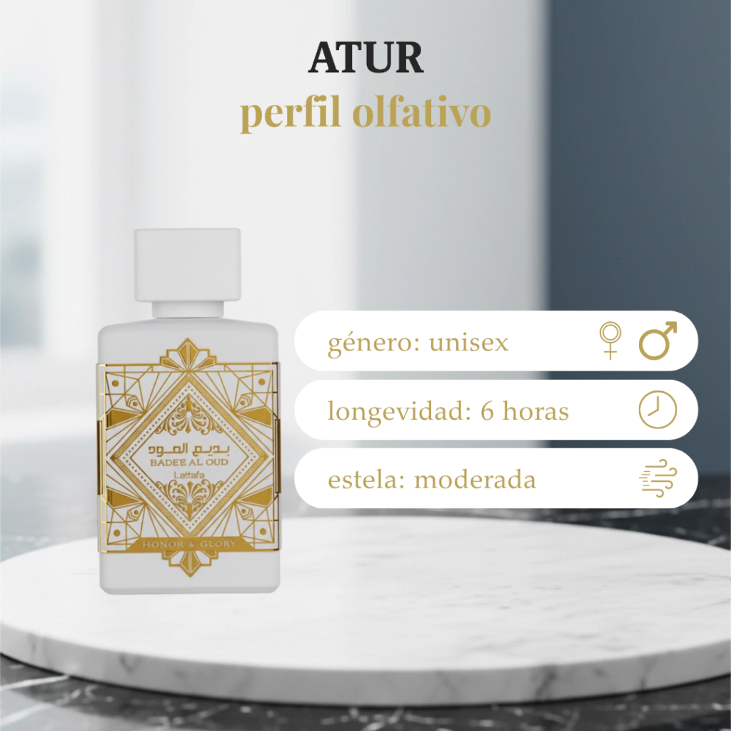 Honor & Glory es un perfume unisex intenso y gourmand que combina dulzura cremosa con un fondo amaderado profundo. Es una fragancia opulenta, moderna y llamativa, ideal para quienes disfrutan aromas dulces, potentes y con gran personalidad.