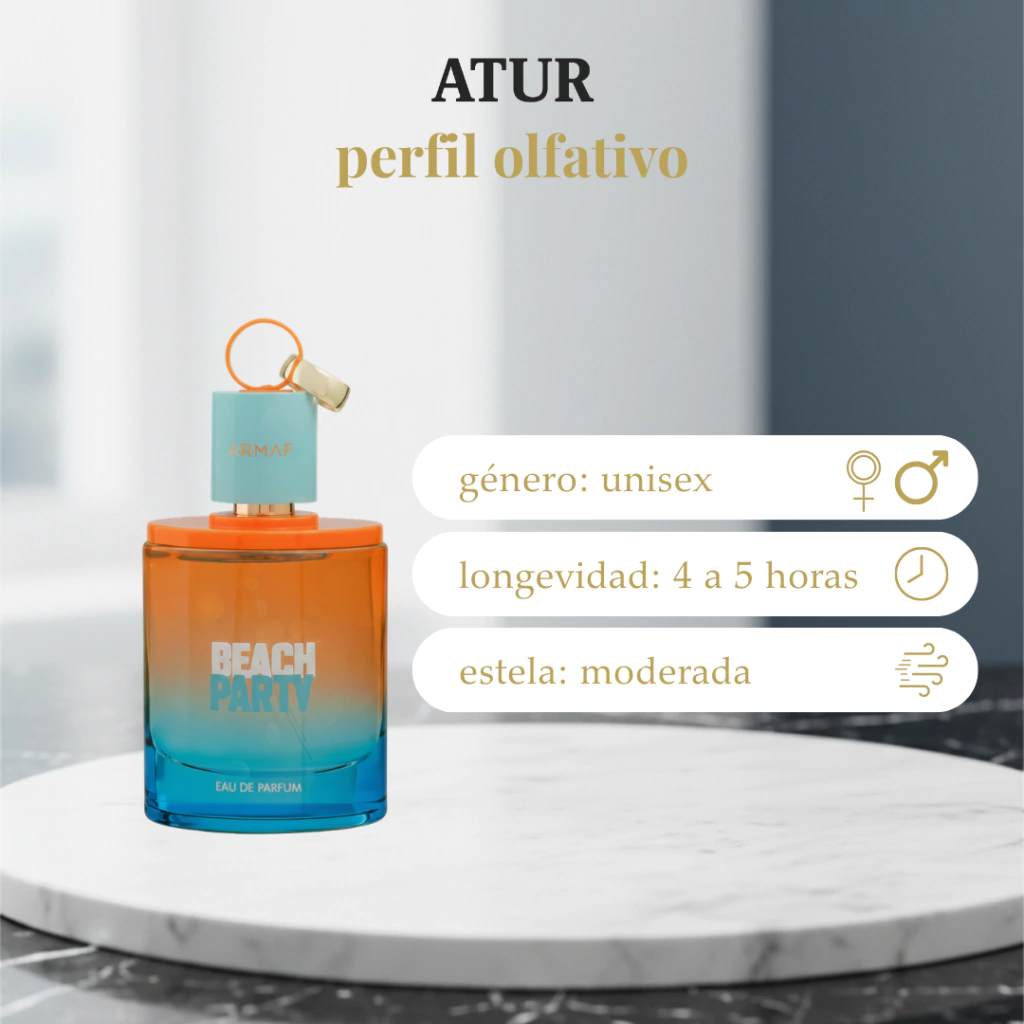 Beach Party es un perfume femenino fresco, tropical y alegre que captura la esencia del verano. Su perfil frutal-floral con matices dulces evoca días soleados, brisa marina y momentos relajados frente al mar. Es una fragancia luminosa y divertida, ideal para quienes buscan un aroma vibrante y veraniego.