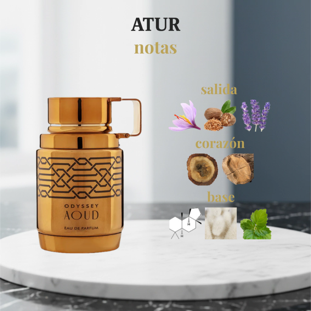 Odyssey Aoud es un perfume masculino intenso y especiado que centra su carácter en la riqueza del oud combinado con notas cálidas y aromáticas. Su apertura con azafrán, nuez moscada y lavanda le da un toque exótico y elegante, perfecto para quienes buscan una fragancia profunda, moderna y con presencia marcada.