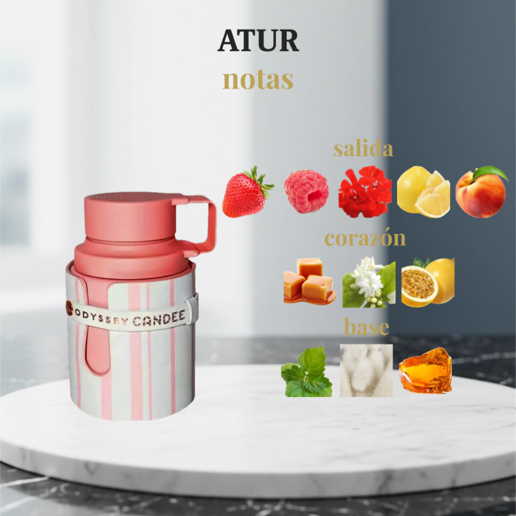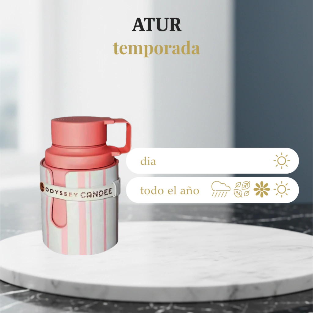 Odyssey Candee es un perfume femenino dulce, divertido y gourmand, pensado para quienes disfrutan fragancias alegres y adictivas. Su perfil azucarado y cremoso envuelve con una sensación cálida y juvenil, ideal para mujeres que buscan un aroma coqueto, moderno y fácil de amar.