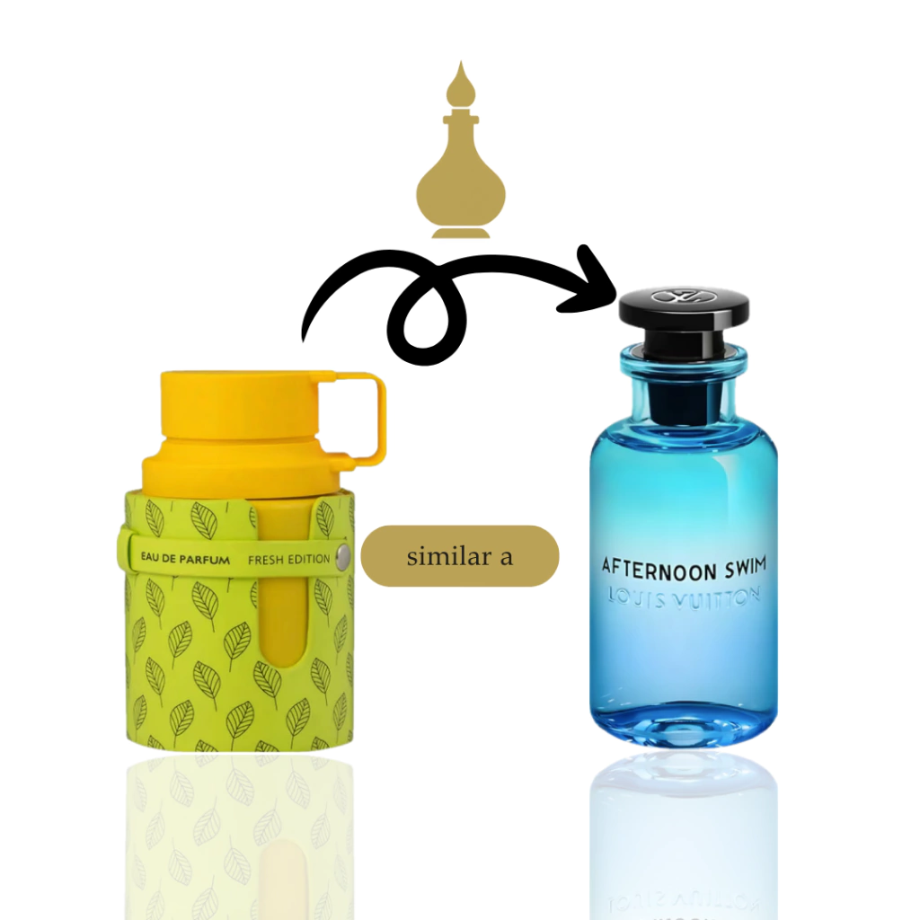 Inspirado en fragancias cítricas limpias y refrescantes de estilo mediterráneo. Similar a Afternoon Swim de Louis Vuitton
