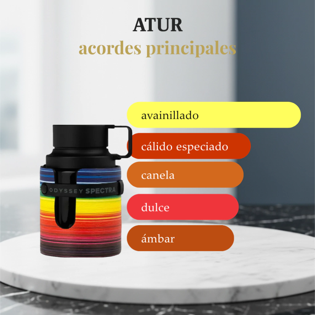 Odyssey Spectra es un perfume masculino moderno, vibrante y elegante que combina frescura con un fondo más profundo y sofisticado. Su perfil aromático-especiado lo hace atractivo y actual, ideal para hombres que buscan un aroma con personalidad, versátil y acorde a un estilo urbano y moderno.